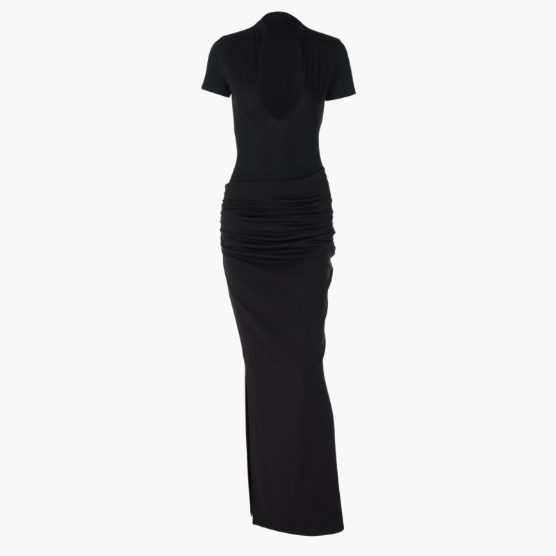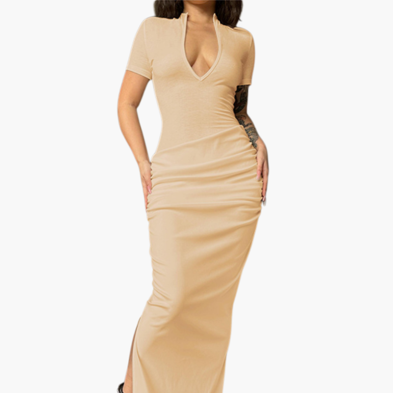 딥 V넥 디자인으로 볼륨감 강조, 신축성 좋은 소재로 착용감 우수, 세련된 실루엣 연출, 파티·모임에 적합한 섹시 드레스